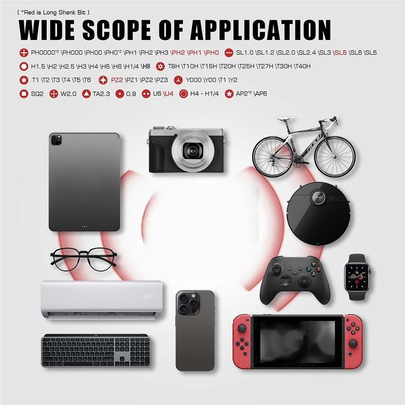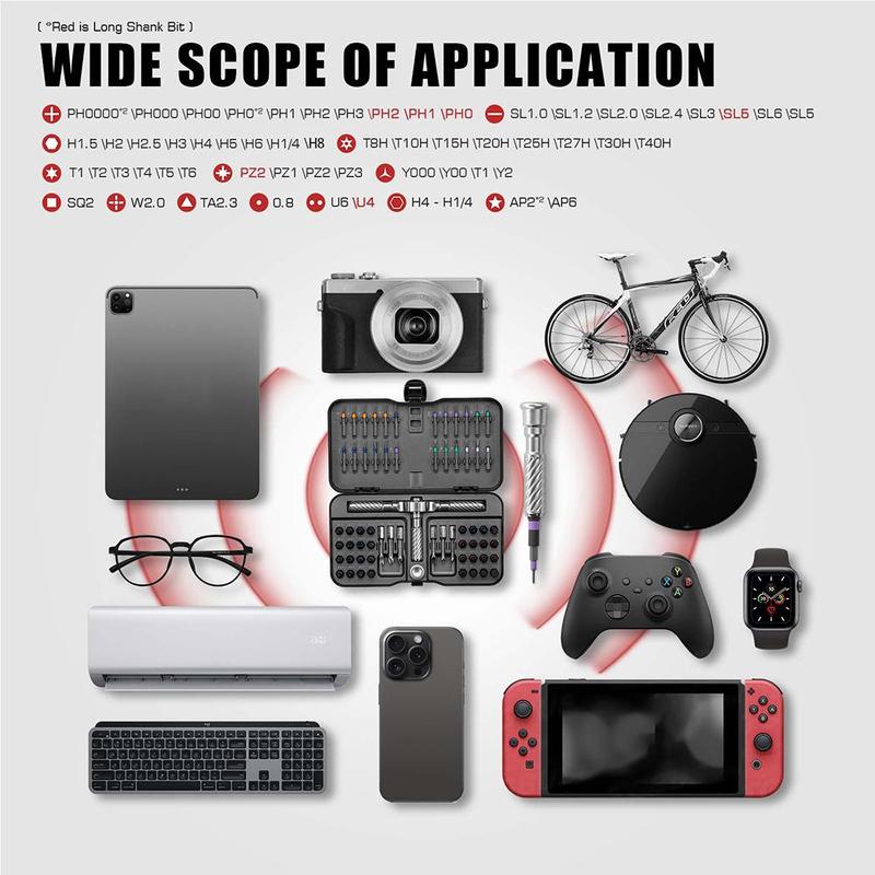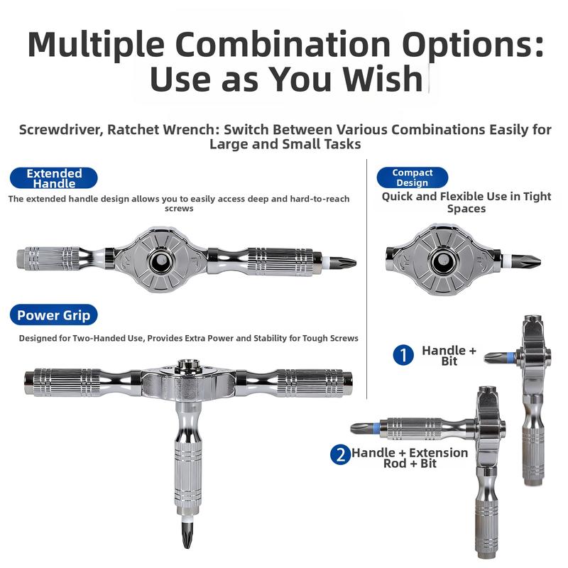 Ausgestattet mit magnetischen Schraubendreher-Bits, sorgen für sichere Befestigung und einfache Rückgewinnung während Reparaturaufgaben.Diese Funktionen machen das Set ideal für präzise Arbeiten.Ratschengriff Abnehmbarer T-förmiger